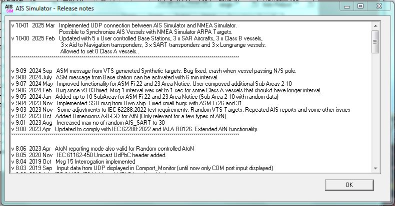 NEW!       v. 10.01 - Possible to connect with NMEA Simulator to synchronize ARPA Targets with AIS Vessels.