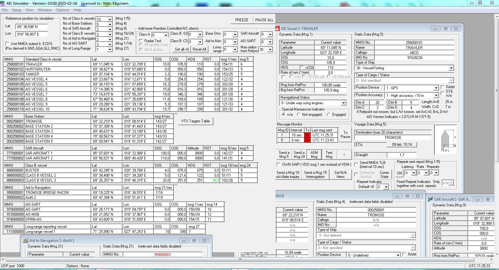 AIS Simulator is designed to simulate user controlled AIS data for up to