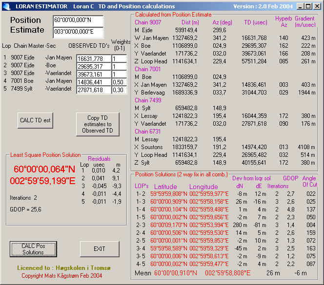 Loran C Estimator (Freeware) A Loran C calculator. All NELS chains included. Please feel free to download a freeware version. Updated : 06.04.2024 Home